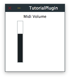これで、調整できるコントロールができましたが、実際には何もコントロールできません。 入力されるMIDIデータをインターセプトして、ノート・オン・ボリュームをスライダーのボリュームに置き換える必要があります。 プロセッサー・スレッドでMIDIエフェクトをコントロールするためにスライダーの値を取得するには、 プロセッサー・スレッドに新しい変数を作成し、スライダーを使って変更できるようにする必要があります。